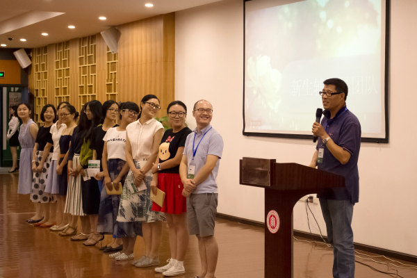 紧接着,是书院新生辅导员的精彩亮相。十二位新生辅导员衣着整齐,站成一排,俨然一道美丽的风景线。他们以精神饱满的姿态,展现了书院辅导员团队的最佳风采,他们向家长示以微笑,传递着书院的温暖。在辅导员的自我介绍中,他们从自我特长、任职经历等方面出发,向家长传递着“相信我”的信念,希望与家长共同守护学生的成长。