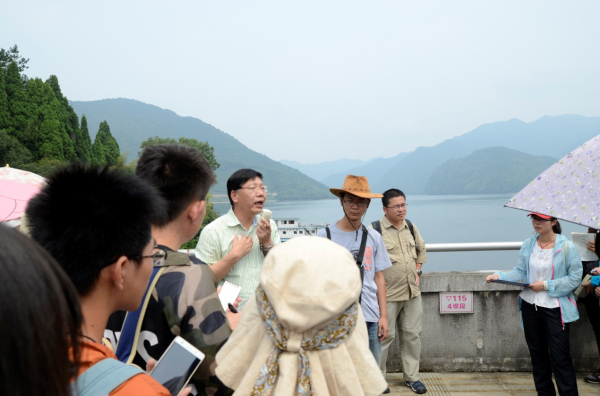2015年8月28日上午,13级地理专业大二野战军乘车来到了今日第一个野外实习根据地——新安江水库。首先我们听导游介绍了这座建国后中国自行设计、自制设备、自主建设的第一座大型水力发电站,随后就乘船置身于碧波浩瀚的千岛湖中,湖中千岛百姿,岛上林木茂盛、满目葱绿。下船后大家又迅速从陶醉状态进入到了热情高枕的求知状态,听郑祥民等老师讲解,进一步了解了修建水库对人类的意义以及对环境的影响。最后大家兴致勃勃的前往农夫山泉基地进行了参观与学习。
