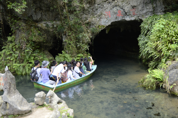下午,炎炎烈日并不能影响我们前往第二站——灵溪洞观察学习喀斯特地貌的兴致,我们乘坐小木舟穿梭于灵栖洞内,不仅看到了上下连成一线的石柱,还有正在进行氧化还原的石钟乳上的水滴落到身上,令人印象深刻。出洞后我们又穿过石林迷宫回到了集合地点,恋恋不舍地结束了今日的野外行程。