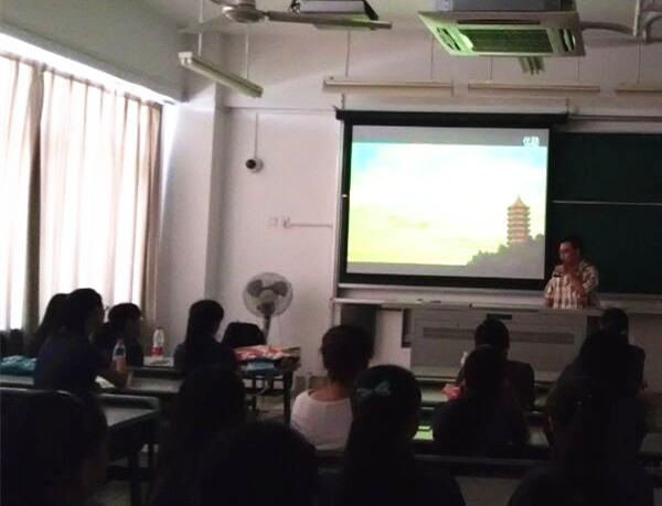 窗帘合上了,灯光熄灭了,我们静静欣赏一个讲述梦想与现实的短片。片中主人公在梦想和现实的天平在犹豫徘徊,当选择梦想时饱受讥笑,当选择现实时痛苦不堪。最后,他还是勇敢地遵从初心,完成自己“摘星星”的梦想。同学们聆听着他人的故事,也思索着自己的现状。这个具有教育意义的短片,让同学们陷入了沉思。