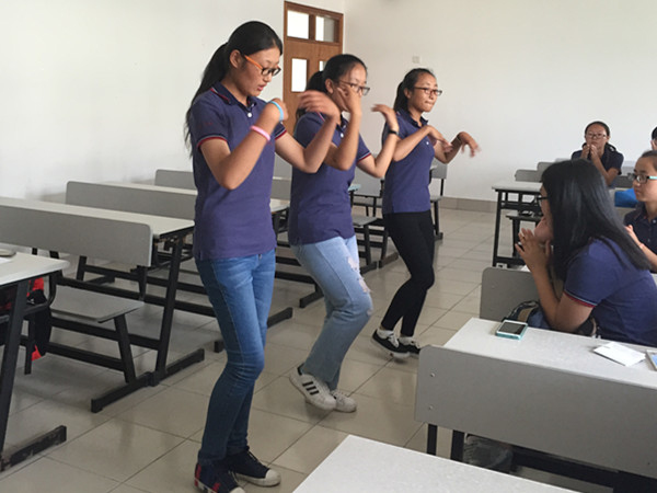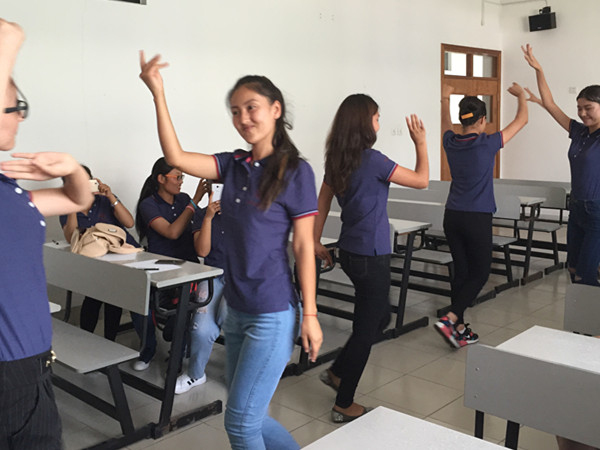 在沉默定心思索过后,又迎来了欢腾的才艺展示活动。化学系的同学有不少是少数民族,他们能歌善舞,热情大方,多才多艺。来一段有民族特色的音乐,她们立马翩翩起舞。其他同学也非常感兴趣地参与进来,有的举起手机咔嚓咔嚓地拍照,有的跟着节奏拍手鼓掌。在热烈的气氛中,第二次班会圆满结束。