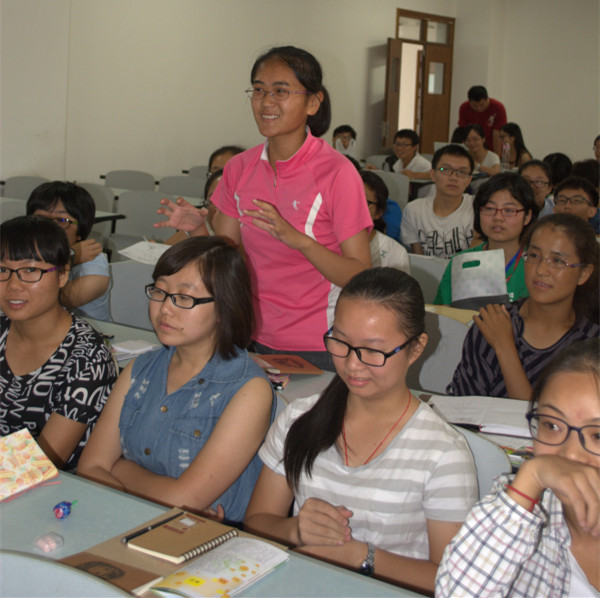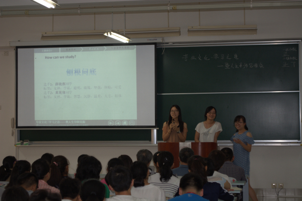经过了高强度的思维锻炼,同学们收起了对大学学习的轻视,认真地倾听《学霸养成手册》的主编杜金金学长和吟雅斋的社长洪雨沛学长解析数学专业课程,并与学长们积极互动。