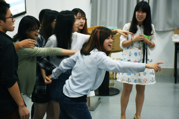文建的自我介绍可以说是别出心裁。采用了“我的故事说给你的左耳听”游戏的方式让彼此了解对方,拉近了心与心的距离。而紧接着的抱团游戏更是将活动推向高潮,主管、部长、新干事根据游戏规则毫无隔阂地抱在一起,在音乐声中贴近了心灵。