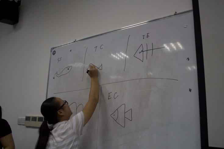 趁着大家刚刚做完自我介绍,一个“生日接龙”游戏更加活跃了现场的气氛。大家只能通过语言之外的方式来了解彼此的生日,然后按照由大到小的顺序站队,而站错的童鞋要受到惩罚。