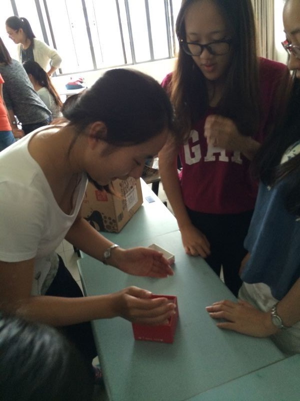 随后,所有的同学通过随机抽签的方式,分成了2个组,领着各自小组的奖品,开始“博饼”。