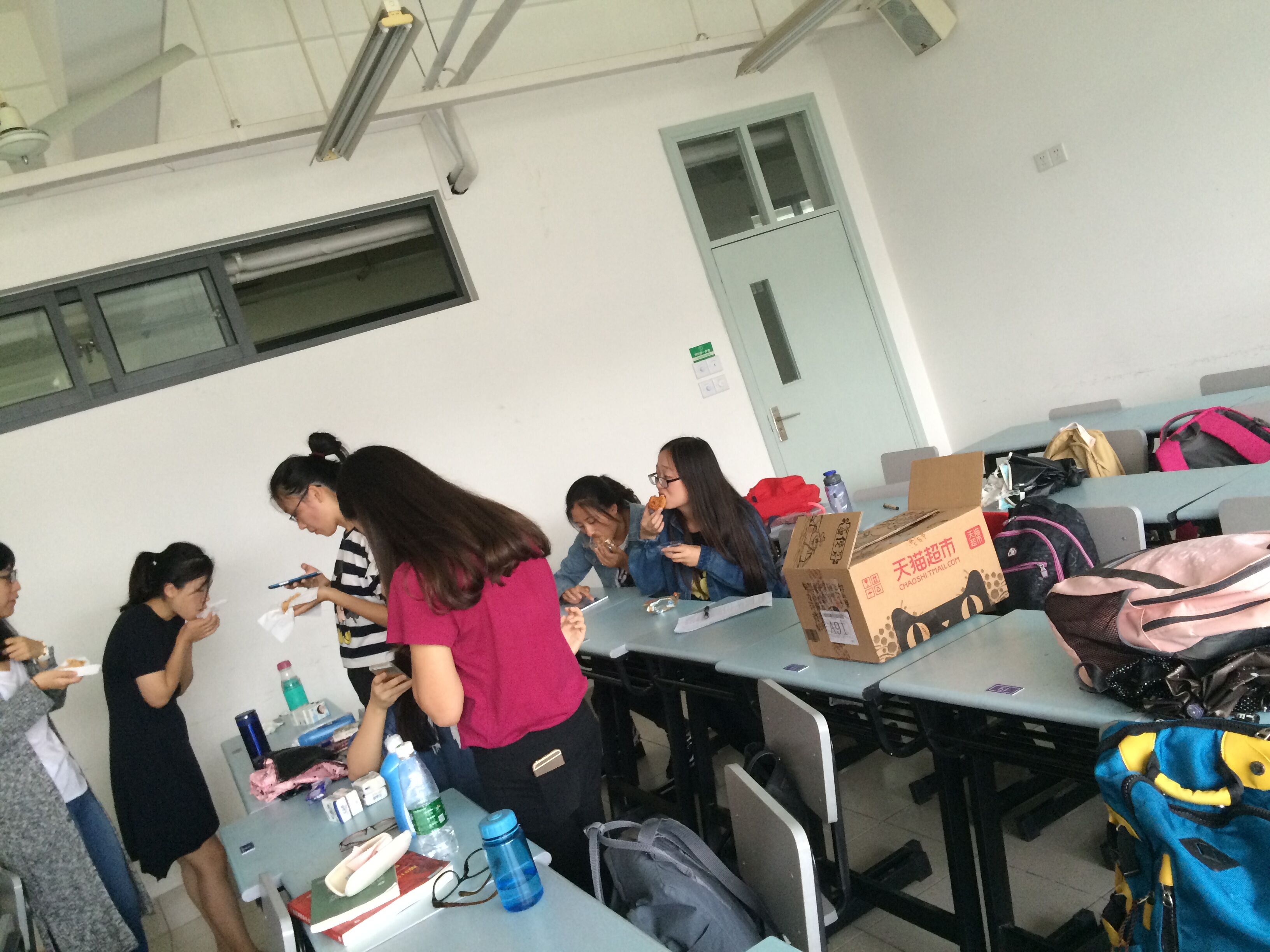 同学们在二教327集合,团支书和班级组织委员向大家介绍了闽台中秋“博饼”活动之历史由来,及其简化规则。