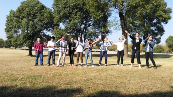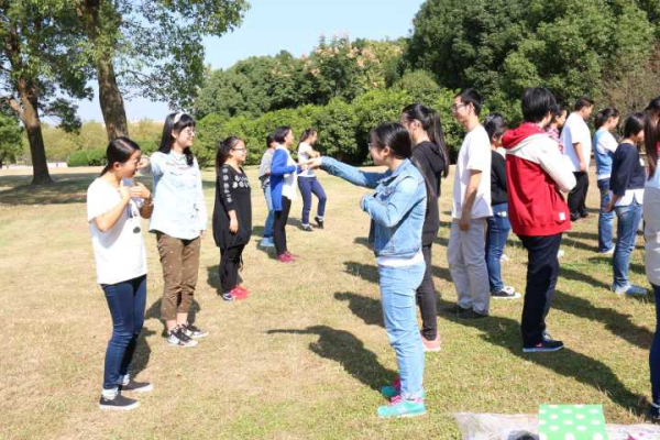 接下来,到了第二游戏环节,这一次的游戏名为“驿站传书”,不能说话,不能回头,只能用肢体传递信息,同学们想方设法,使尽各种招数,最后的结果让我们不得不惊叹于同学之间的默契,竟有三个小组的答案和题目一模一样。