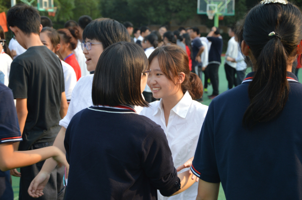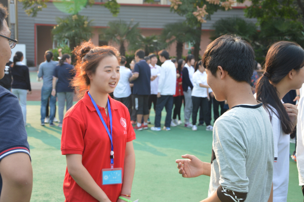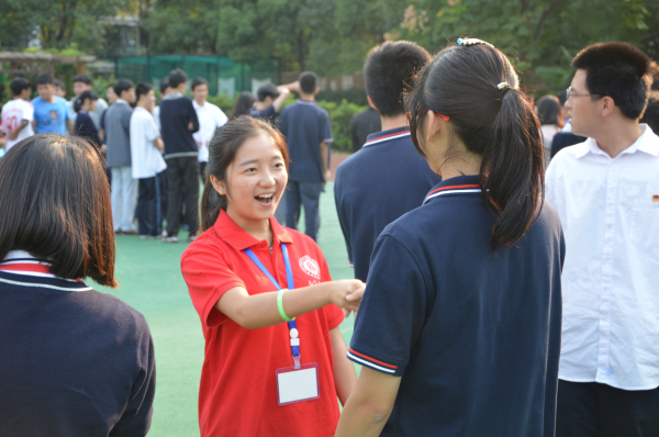 作为此次团体培训活动的主持人,孟院2013级思想政治教育专业刘婷同学与全场100余位高中生默契相许,在暖场游戏开始之前,组织echo通关密码,简单的做了培训初体验,活络气氛。“当我们初次相识,我们要如何打招呼、认识别人呢?”中学生们七嘴八舌开玩笑般的回答问题; “在活动开始之前,我们首先要熟悉每位同学。”在刘婷的组织下“打个招呼握握手,拍拍肩膀抱一抱!”的见面游戏正式开始,所有同学分内外两圈,猜拳比划,欢笑声语不断。
