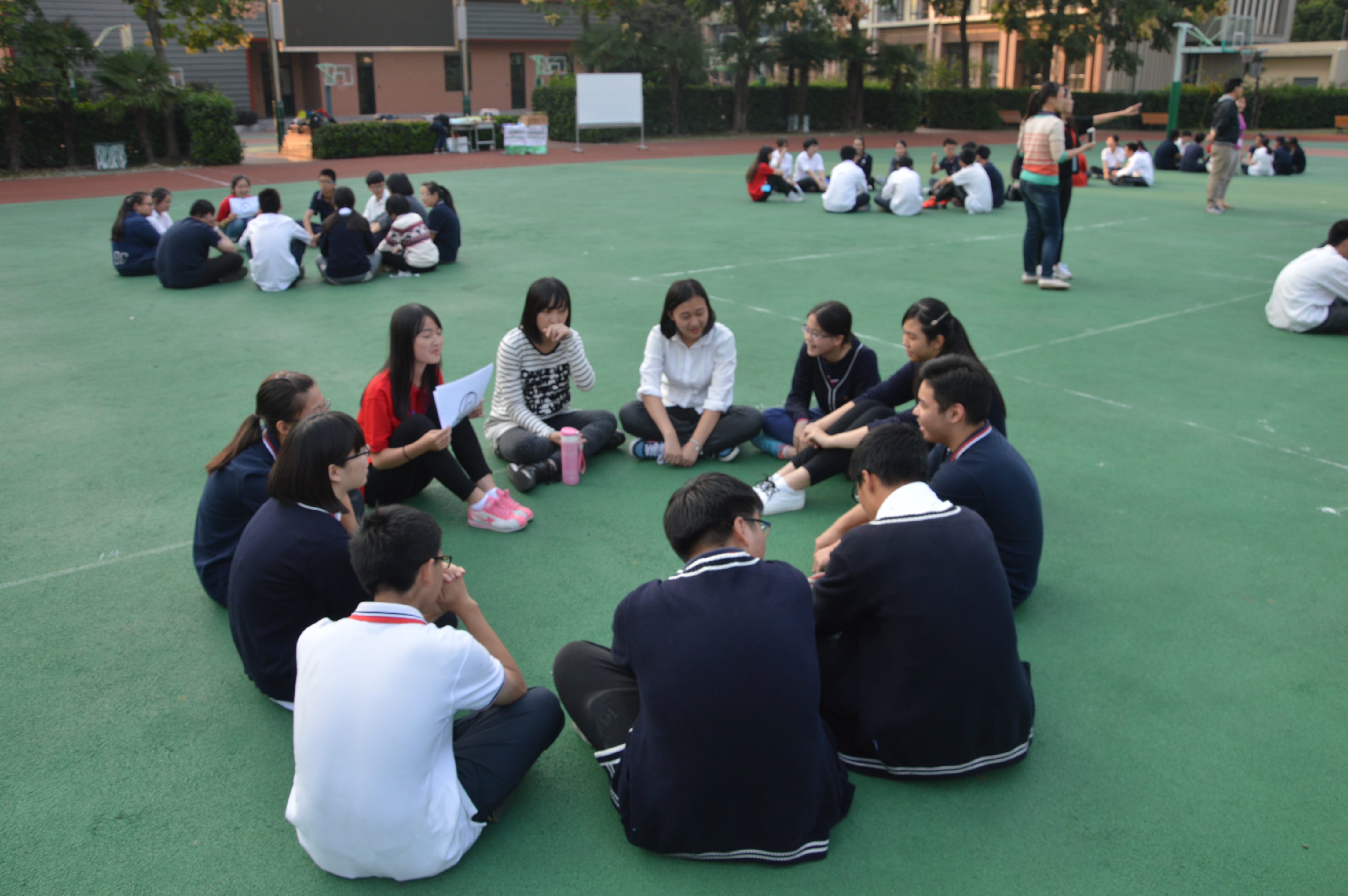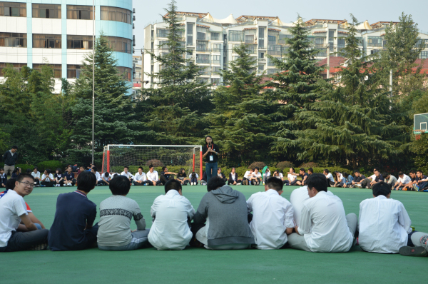上海市西郊学校顾寅老师组织学校高一高二年级100余位同学参与团队破冰活动,在顾老师主持开场后,破冰活动正式开始。