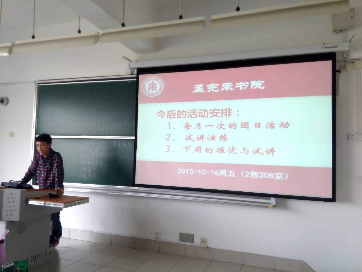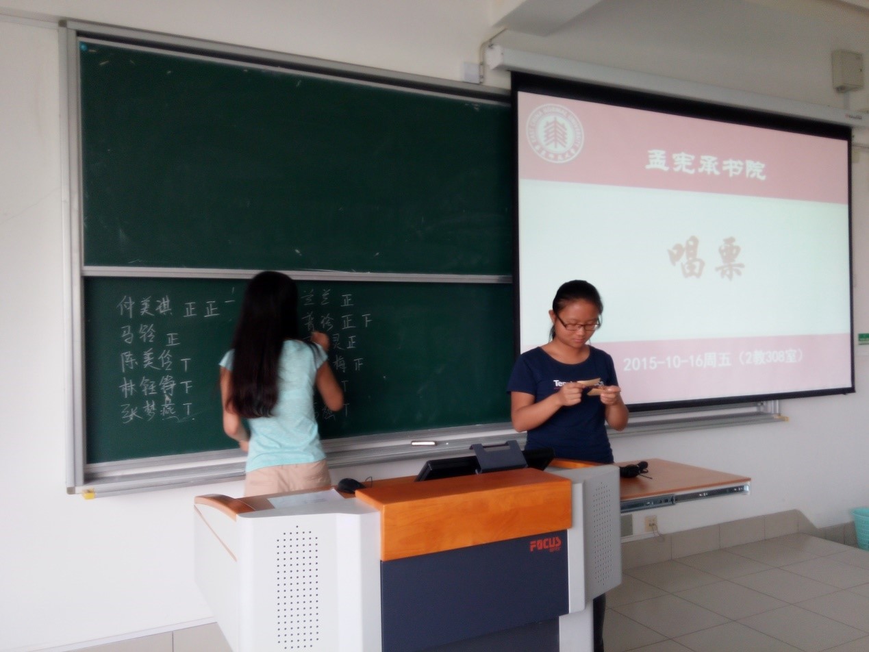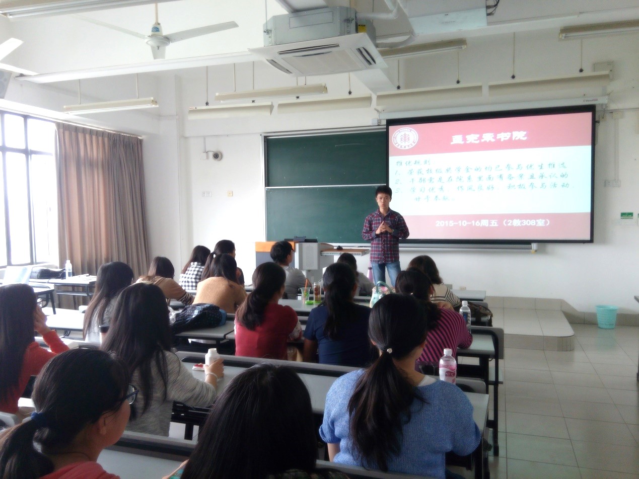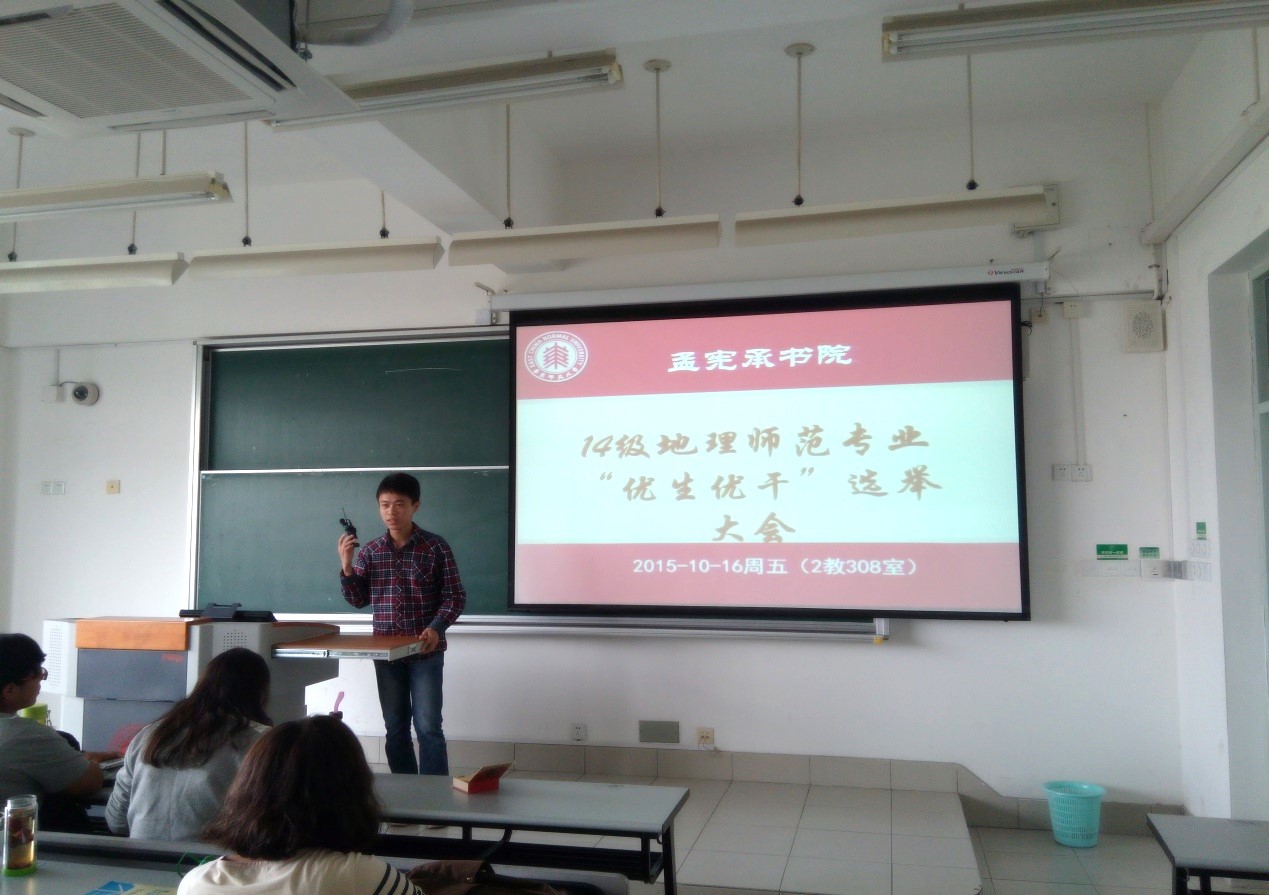 2015年10月16日,14级地理科学专业师范班的同学们在第二教室举行了本专业的“优生优干选举大会”。此次选举本着公平和民主的原则,各环节公开透明,班长全程主持。