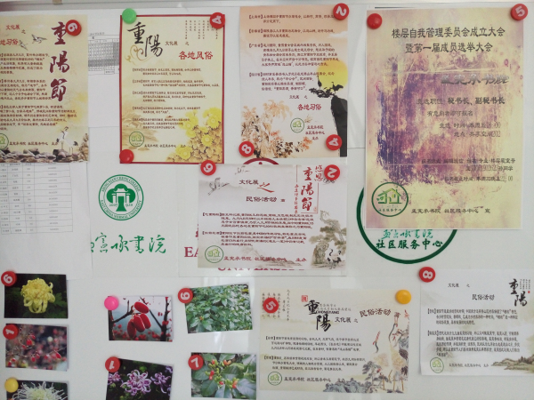 九九重阳节,浓浓敬老情。2015年10月21日,农历九月初九,是中华民族的传统节日——重阳节。由书院楼层长们发起组织的重阳节感恩活动在书院各个楼层之间开展。本次活动通过海报、照片等最直观的展示,在同学们生活的地方倡议他们坚持敬老、亲老、爱老、助老,希望书院学子都能继承和发扬中华民族的传统美德。