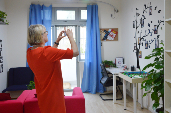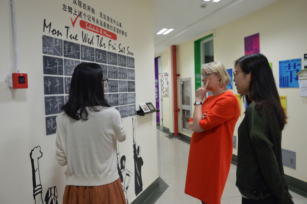 10月22日,英国里丁大学就业中心主任Lorna来访。孟宪承书院学工组长、生涯发展中心指导老师陆敏、就业推进办公室副主任雷妍陪同参观了20号社区孟空间,就书院概况、空间布置、学生使用与管理等方面进行了介绍。Lorna女士表示特别赞同书院倡导的学生自主管理理念,对学生布置的孟空间表示认可和喜爱。