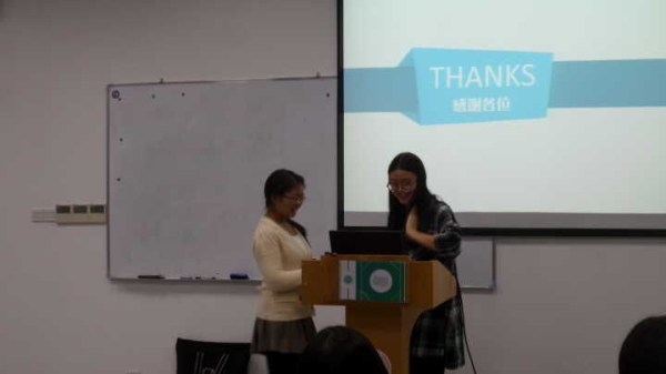 快乐的时光总是这么短暂。不知不觉中,我们这次的培训已经接近了尾声。主持人黄雅玲同学对本次的培训做了一下简单的总结并代表我们全体干事们向老师赠送了我们精心准备的小礼物。副主管也在最后表扬了同学们此次的表现,并告诉大家回去要及时复习巩固此次讲座知识。至此我们问卷调查指导会也在这满满都是爱爱的场景中画上了句号。