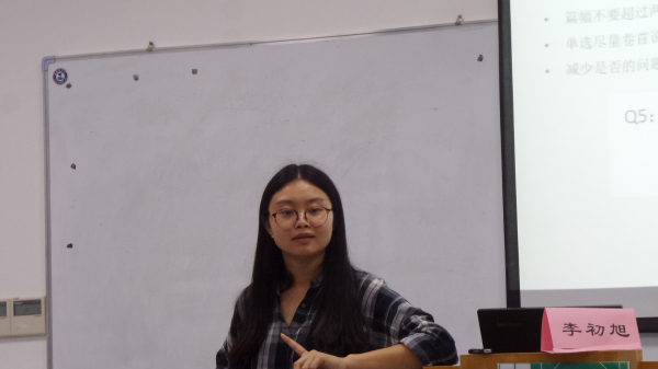 在我们的指导会正式开始之前,我们的主持人黄雅玲同学先向我们大家大致介绍了一下我们这次培训的主题与目的,并欢迎了李初旭老师的到来。主持人轻松自然的开场白,一下就缓解了现场严肃的氛围,本次培训也就在这么愉悦的氛围中开始了。