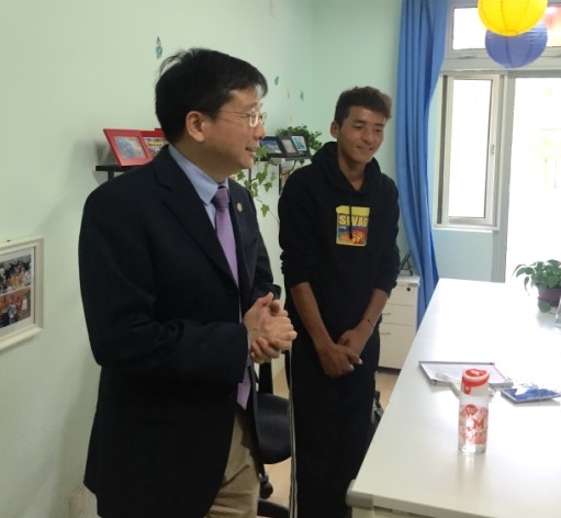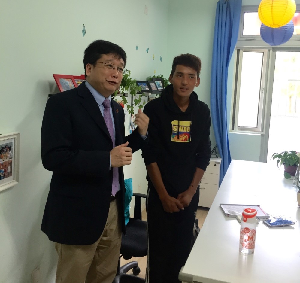 跟高中比起来,大学校园环境好,面积大,平时遇到一个西藏的同乡都很难,没想到我竟然会见到校长。在开学典礼时听校长致辞,听到校长的声音却看不清楚校长的长相。我以为我跟校长的相遇只有可能是在一些非常正式的场合,没想到竟然在社区服务中心值班时校长会过来,当时真的激动啊!