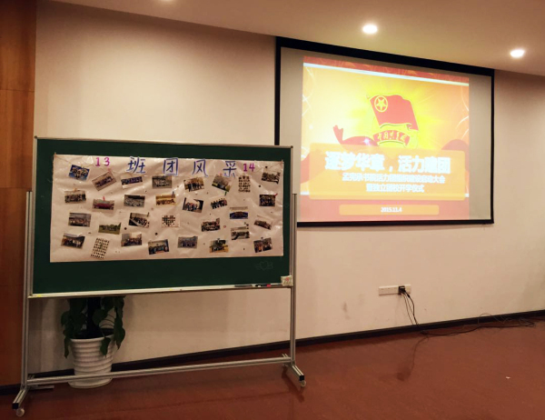 大会的最后,工作人员为大家呈上13级和14级团支部建设的视频及照片展板,13、14级与会代表手持入场时收到的班级照片,在温馨的视频音乐中回忆往昔美好的支部生活,15级与会代表则在视频的观看中憧憬着未来支部生活的精彩。视频及照片记录着每一个支部成长的点滴,也展示着每一位支部成员青春的闪耀。青春是生活赋予我们一种巨大的和无限高贵的礼品,充满着力量,充满着期待,充满着希望。而支部的生活相信会是一份最最珍贵的礼物,献给我们无悔的青春。