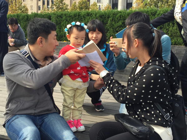 繁华的外滩,以高大气派的陆家嘴商业中心为背景,我们亮出海报,支起黑板,自信地开始演讲,十足的魅力吸引了众多游客的驻足!在这里,我们拿出纸笔,教可爱的小朋友用稚嫩的笔尖写下自己的名字,也记录下未来的希望;也在这里,选手为游客送上真挚的祝福,三口之家,其乐融融。我们的选手们,也如同一个大家庭,共同面对,共同前行,共同成长!