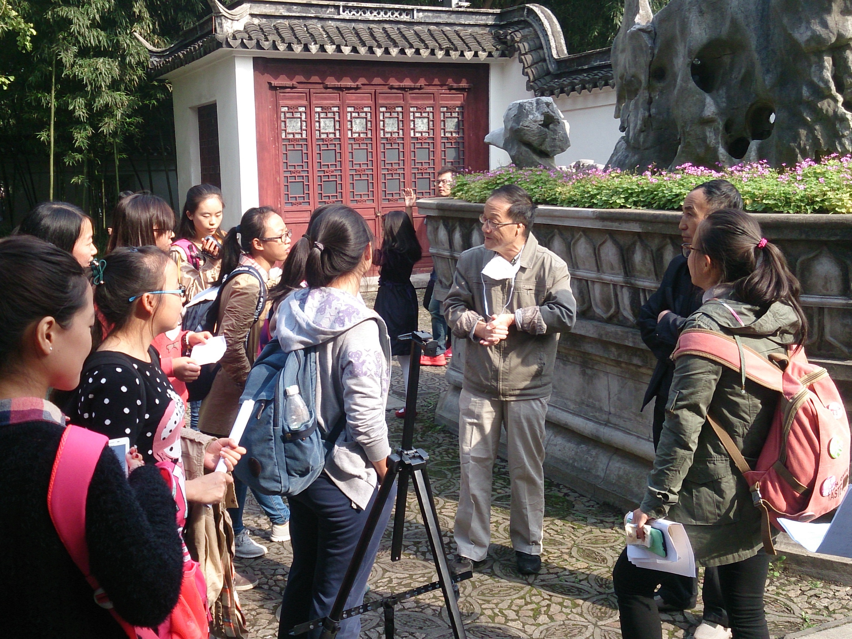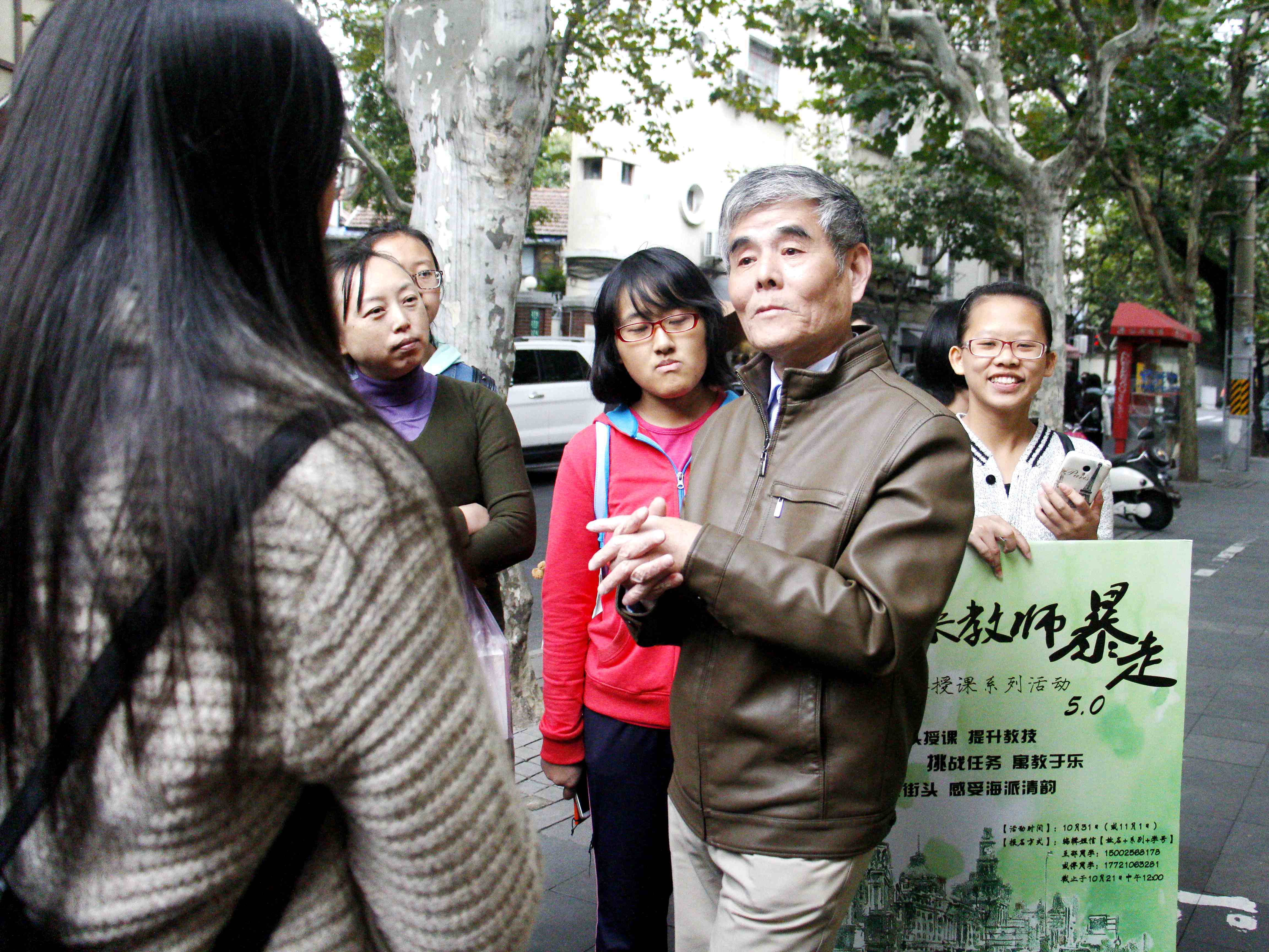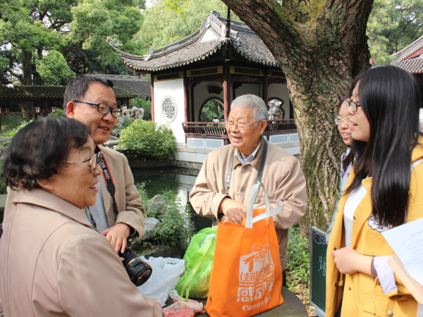 在选手们精彩讲课之余,我们的互动任务也进行得分外顺利。请上海的爷爷奶奶教我们用上海话说各种蔬菜水果的名字,;还有古漪园的老粉丝为我们倾情讲解这里的古往今生;遇到幸福满溢的一家人,为他们送去衷心的祝福。我们互相“授课”感悟生活的真谛,在幸福与快乐中展现未来教师们的风采!