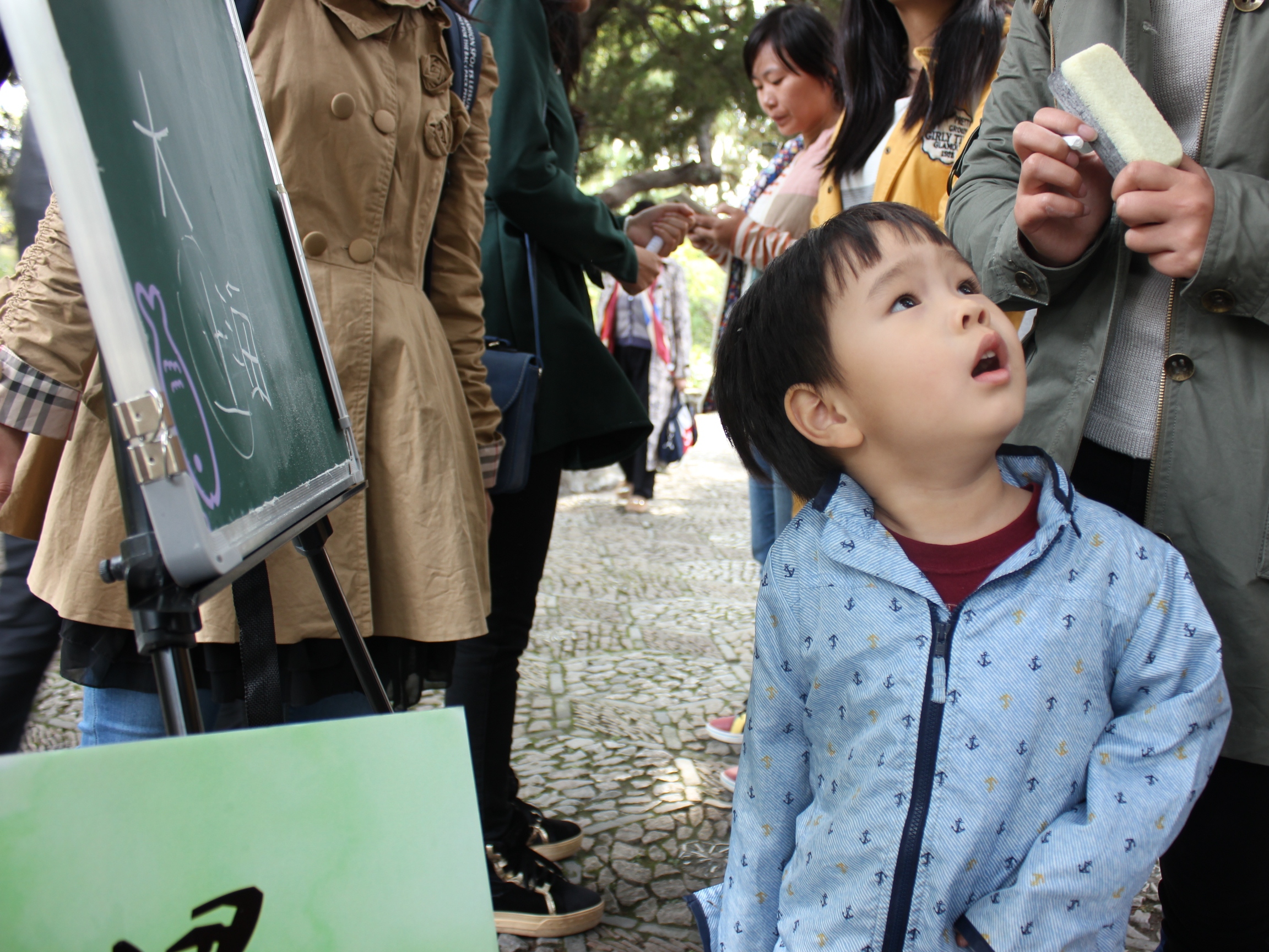 十点多的徐汇公园正值热闹的时候。选手们在树荫下扎起小黑板开讲啦! 14级思政专业的康悦同学讲述的勾起人食欲的多种多样的上海小吃,给我们展现了上海这一国际大都市的饮食文化,小笼、生煎、锅贴、八包辣酱…甚是令我们垂涎欲滴!14级汉语言文学专业蔡申申给我们带来的“从琅琊榜到诗经中的爱情”,吸引了不少前来倾听的小情侣。此外,还有选手与小朋友之间逗乐的“copy不走样”,让我们懂得了合作的意义,收获了童真和小朋友们可爱的笑脸。