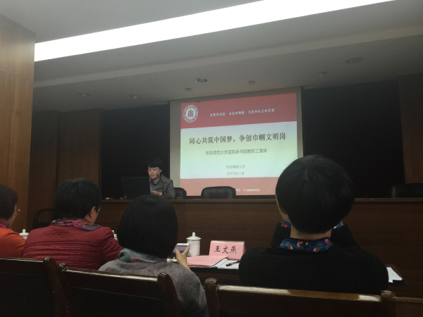 2015年11月10日,孟宪承书院党委书记兼院长吴薇教授、党委副书记杨艳红参加创建交流检查会,与上海市教育系统各兄弟单位交流探讨创建工作,吴薇书记做“同心共筑中国梦,争创巾帼文明岗”的主题汇报。