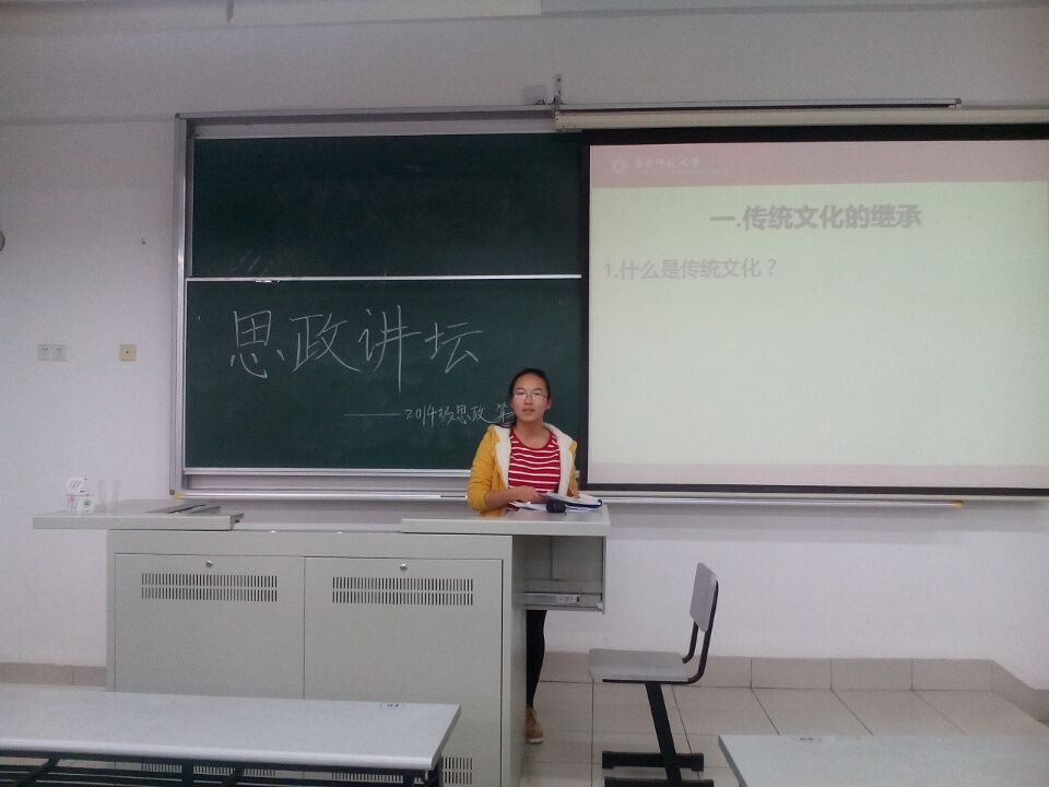 初冬多是雨水,雨后的晴天总是那样清晰和明艳。在2015年11月10日这个立冬后的第一个晴天,14级思政专业的全体同学和辅导员刘佳老师在一教121迎来了本学期第三期思政讲坛。