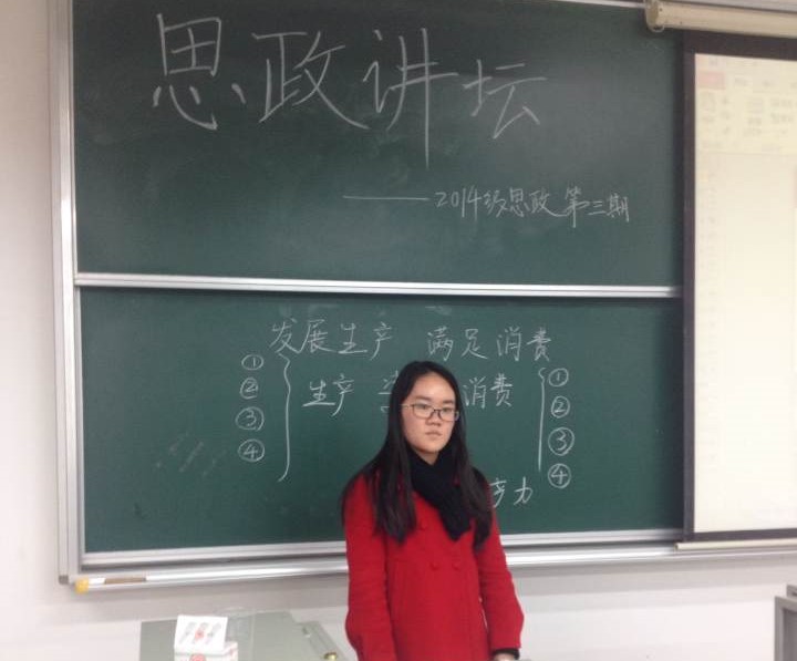 随着王子璇的结束,坐在下面的蒋莹开始左顾右盼起来,这是紧张还是期待呢?她,蒋莹,就是今天思政讲坛的另一主角,代表第四小组进行上课的主讲人。