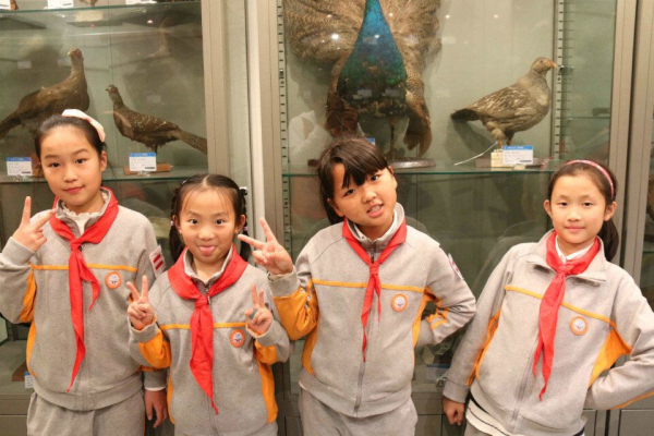 小朋友在标本前合影留念