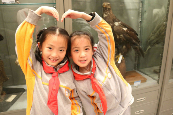 小朋友用心形表达她们对标本的喜爱