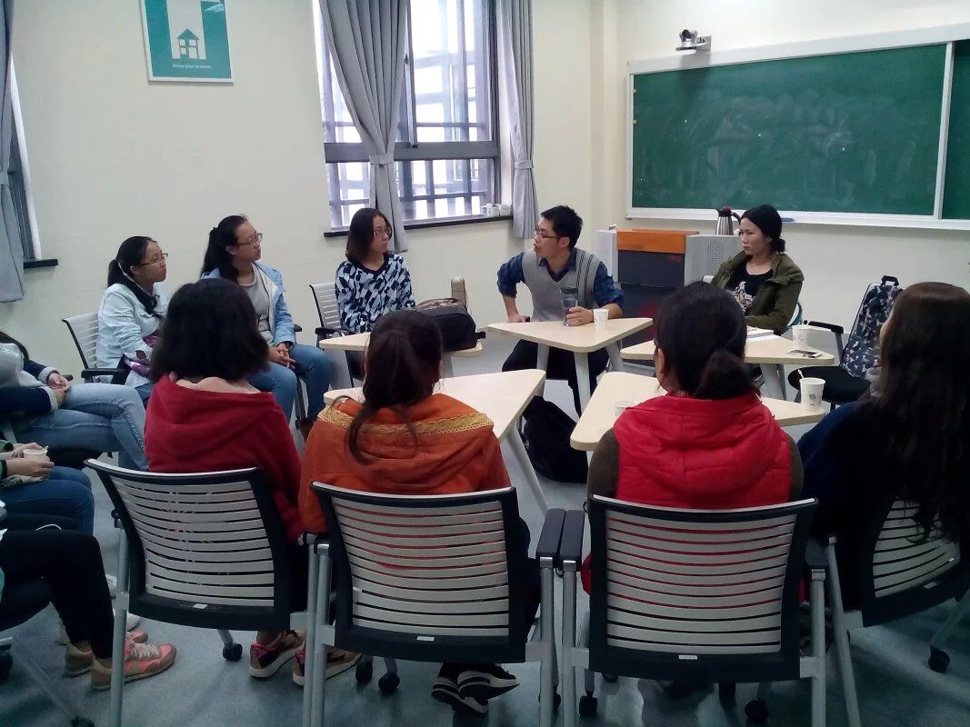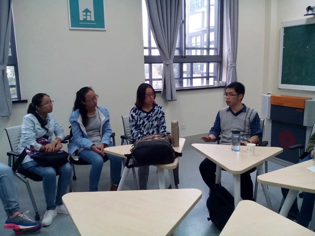 今天,我班同学与张春雷导师进行了第一次的见面与交流,张老师为人风趣幽默,平易近人,与同学们交谈融洽,打成一片。他时而耐心的询问同学们的困惑,时而深思问题的解决方法,时而举例阐释、循循善诱。