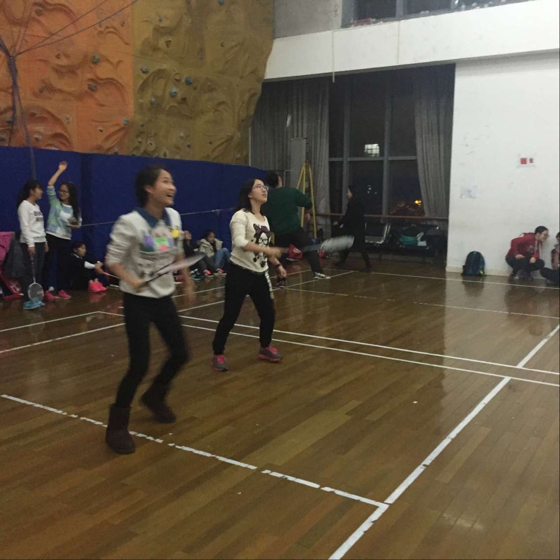 在听团支书翁丽芸同学和运动达人严泽嵩同学讲解完积分规则和羽毛球比赛规则后,同学们组队开始比赛。为了尽可能多的同学能参与到活动中来,每场比赛只计算11个球,与正规比赛稍有不同,但是大家秉持着“友谊第一,比赛第二”的运动精神尽情参与在活动之中。