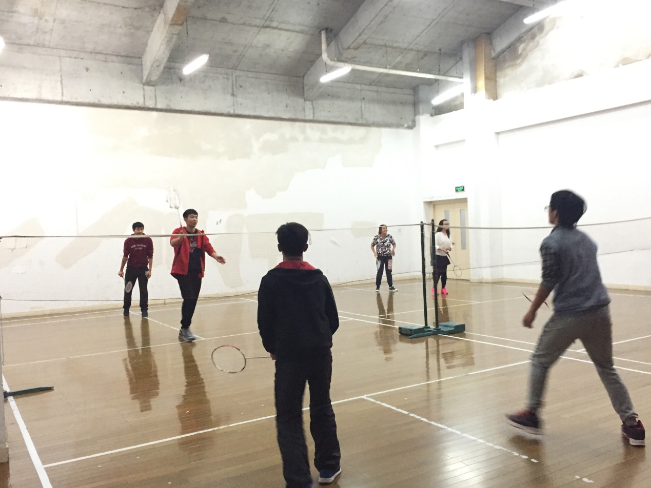 2015年11月24日晚20点,孟宪承书院2014级数学专业在大学生活动中心二楼羽毛球场地中举了以“羽你同行”为主题的团日活动。
