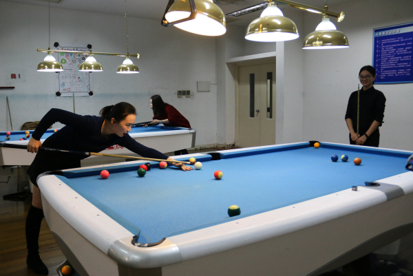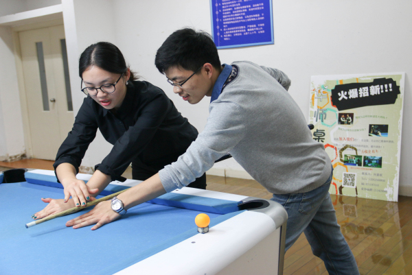 而桌球对于现在的年轻人来说吸引力极高,很多同学都对它抱了极高的热情,不过同样有许多同学并不是那么的擅长。幸运地是,我们桌球组有两位大师级的人物,她们热情地对每一位组内成员进行手把手教学,令菜鸟们技艺大增啊。
