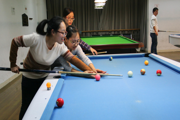教学任务完成后,接下来同学们就要开始精彩激烈的乒乓球和桌球比赛啦。首先展开的是乒乓球比赛,各参赛队友实力都不容小觑,但却都十分谦让,坚持“友谊第一,比赛第二”,最后还是大家推选珊红成为 “班级乒乓球之王”。接下来就是精彩绝伦的桌球比赛啦,你一球,我一球,新手组的“桌球新秀称号”被丹丹同学光荣摘得,而高手组的“班级桌球之王”称号被心怡同学摘得。
