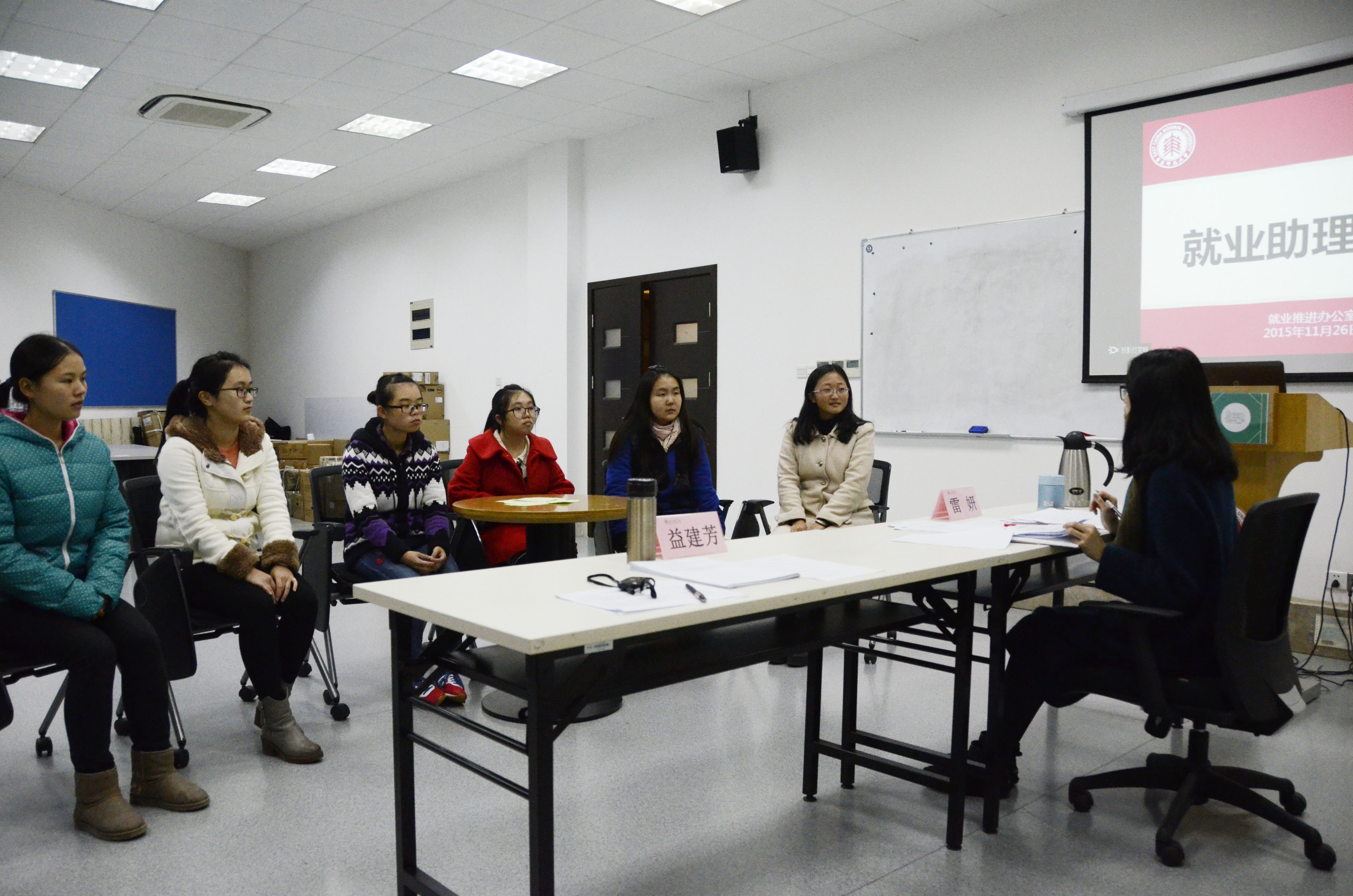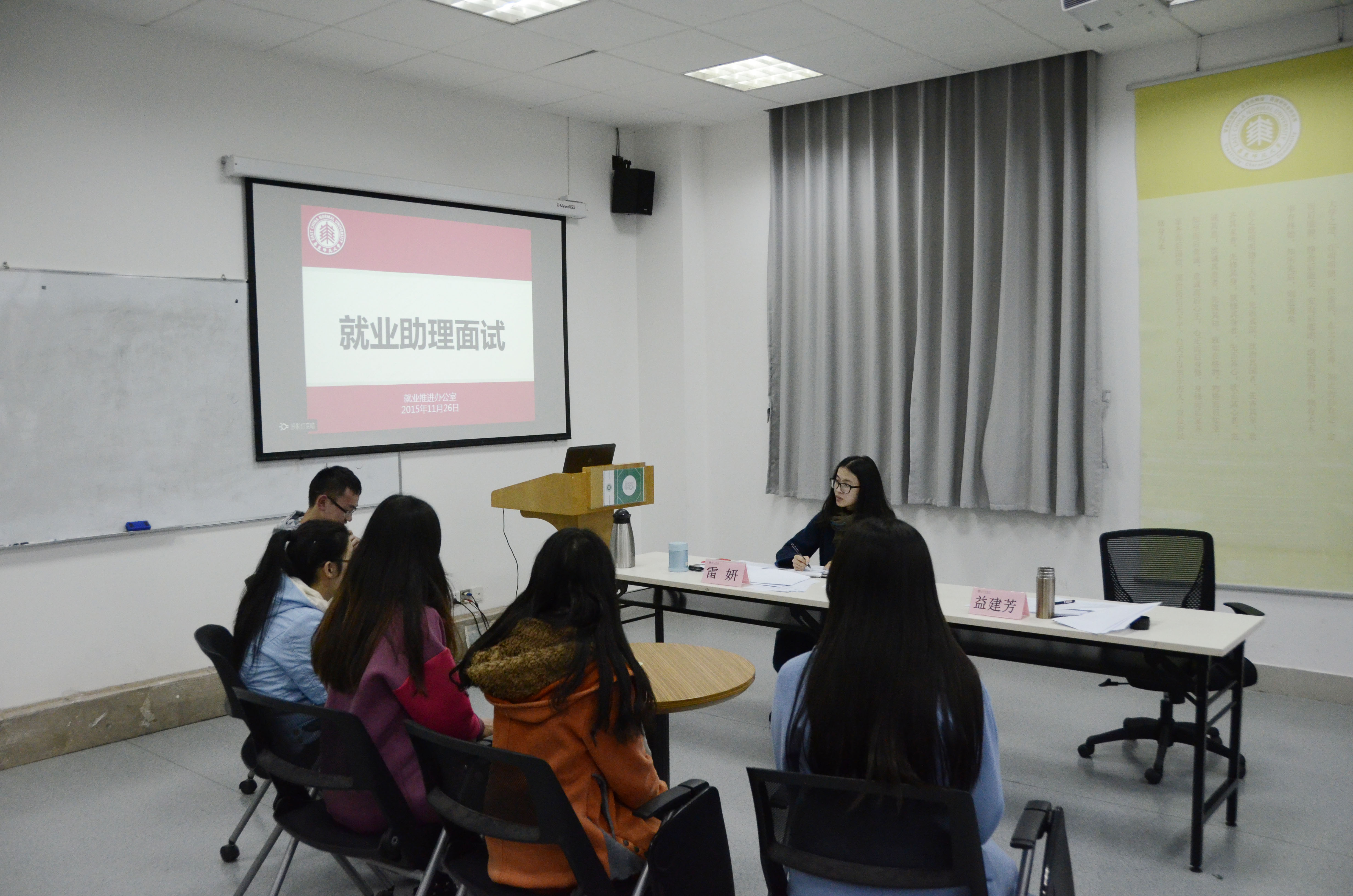 11月26日下午,就业推进办公室组织开展了就业助理的面试,就业推进办公室主任益建芳、副主任雷妍担任面试评委。