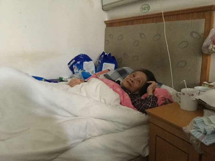 这位奶奶在敬老院已经住了好几个月的时间了,她的腰不好,所以只能躺在床上,不过他的儿子每天都会来看望她。看到我们来看她,她显得格外开心。