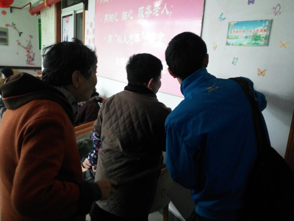 人的一生,何其短暂,不论曾经如何,终归,都会老的。然而,有那么一群人,由于种种原因,不能在家中安度晚年,于是,养老院是他们的选择。养老院,定然是养老的很好的地方,许多可爱的老人住在一起,其乐融融,然而,孤独落寞是难免的。养老院里的老人,值得我们去关注,值得我们用心地去关注!于是,13级汉语言文学专业的学生,打算用自己的空闲时间去养老院,为那些孤独落寞的老人献上自己的爱心。在活动开展之前,班委们一起讨论制定了详细的计划,安排了组次和时间。当把这个消息通知给班里的同学时,同学们热情高涨,积极报名。