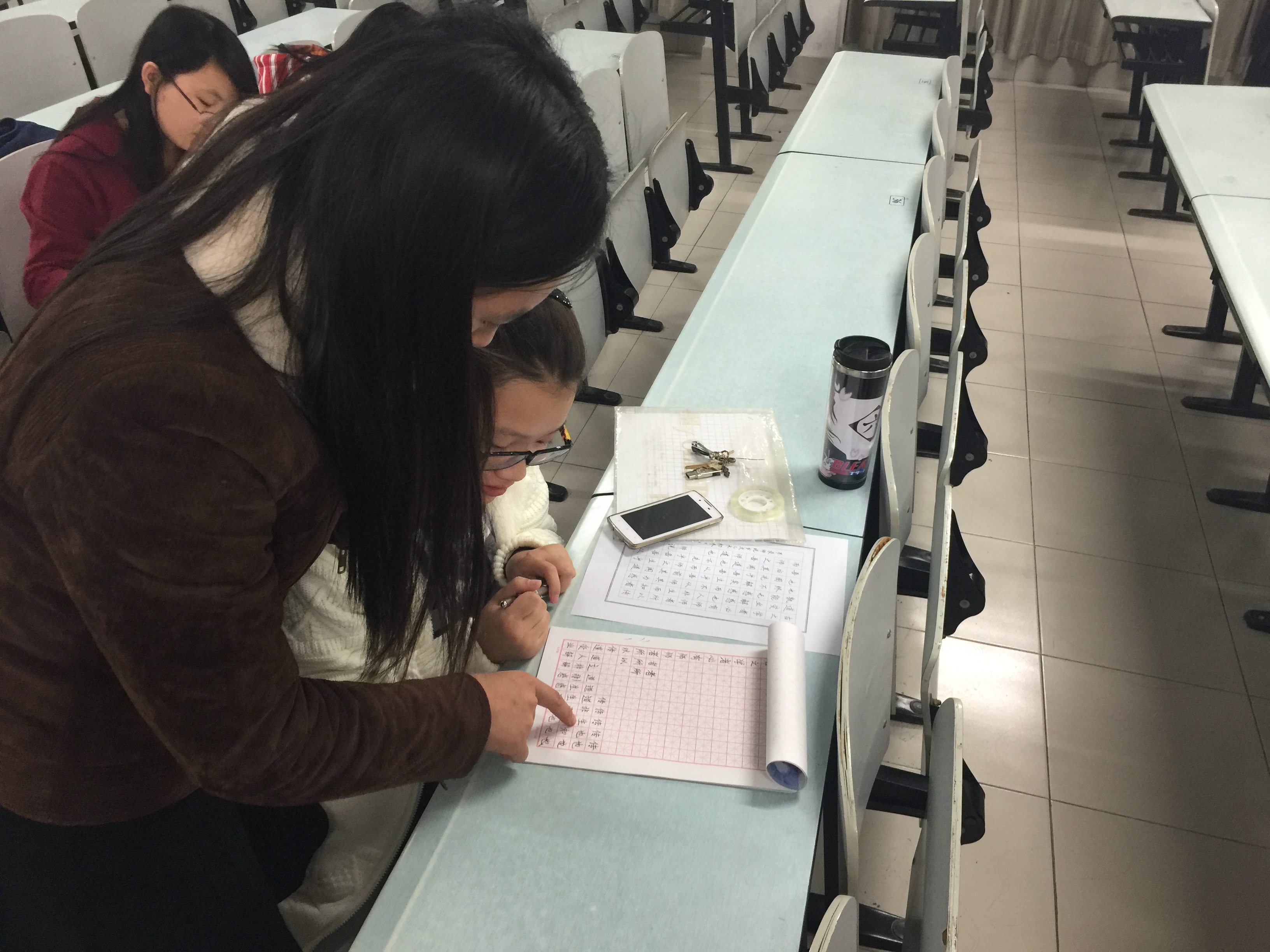 硬笔课上,老师经常一对一地指导,耐心地讲解写字的技巧。伴随着老师如甘霖般的提点,同学们自信的眼神,相信,大家正朝着心仪的字迹慢慢靠近。