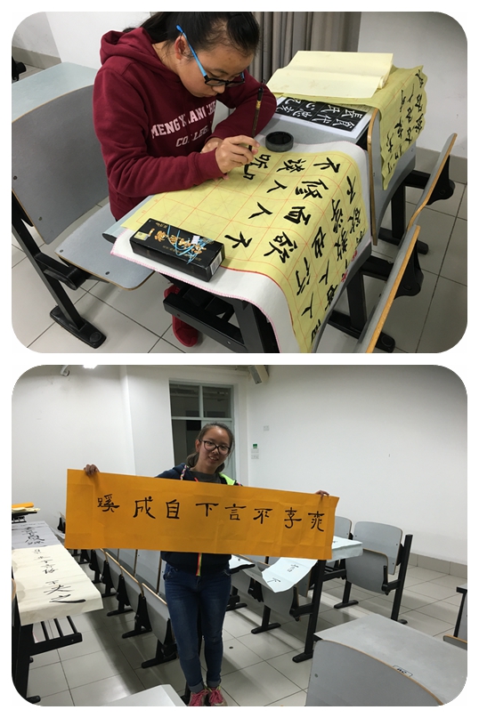 旅途到了最后,闭幕式为这段经历画下一个暂时的句点。同学们在最后的课堂上留下了各自的“墨宝”,记录下成长的轨迹。同学们手持笔墨,时而屏气凝神,思量写法布局。时而挥毫而作,一个个娟秀的字浑然天成。一支笔,一行字,其意义远大于活动证明和优秀学员奖状。