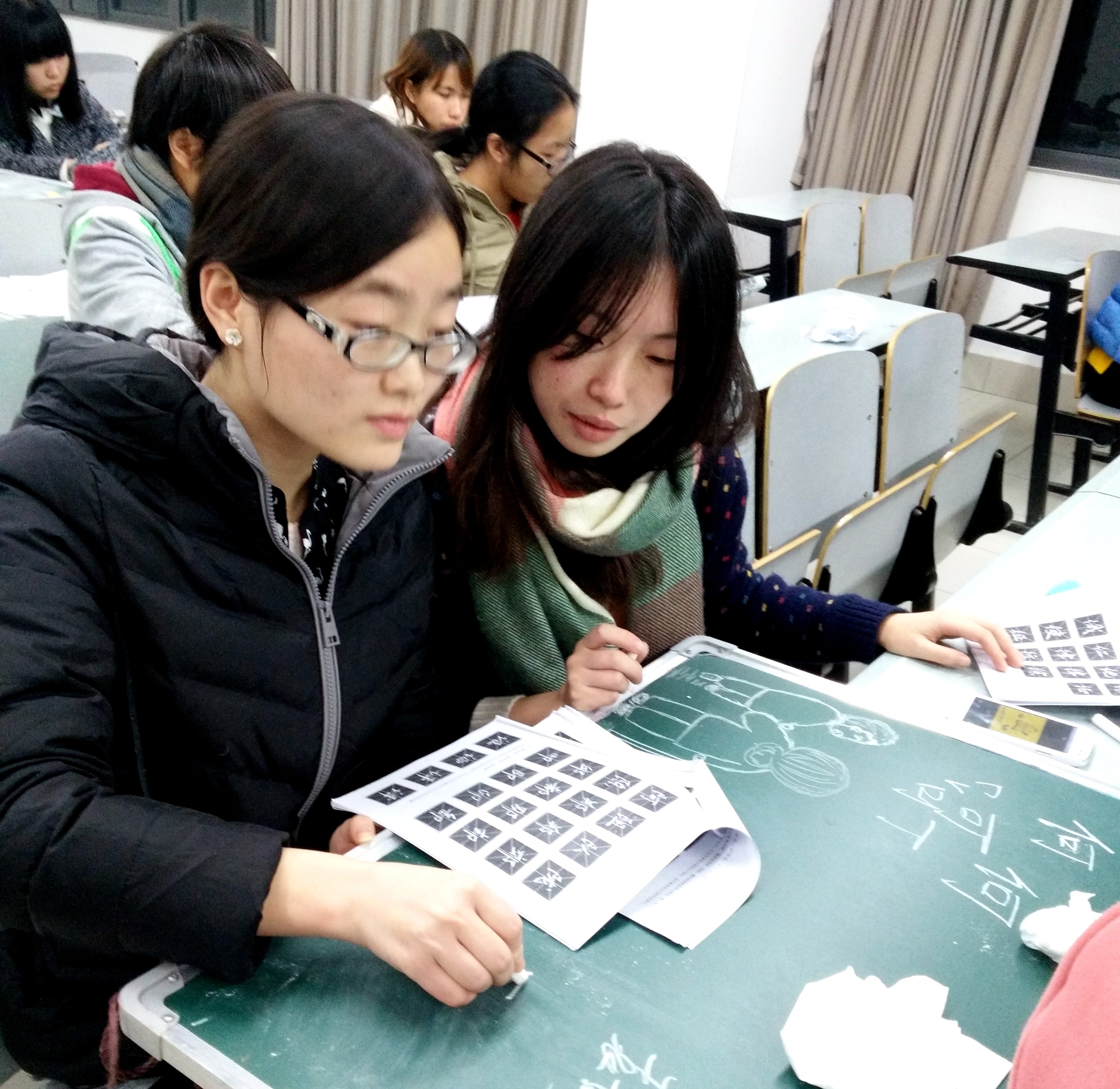 拿起粉笔,脑海中想象音乐中或轻或重的节拍,运笔虚实结合,轻重相交。起——以手的势能转化为动能,将气注入其中;行——空中作势,使笔画以圆弧相连;收——接行笔之势,方圆藏露,无往不收,无垂不缩。人,笔,黑板,遥想未来三尺讲台,感觉人生最美的时光莫过于此。