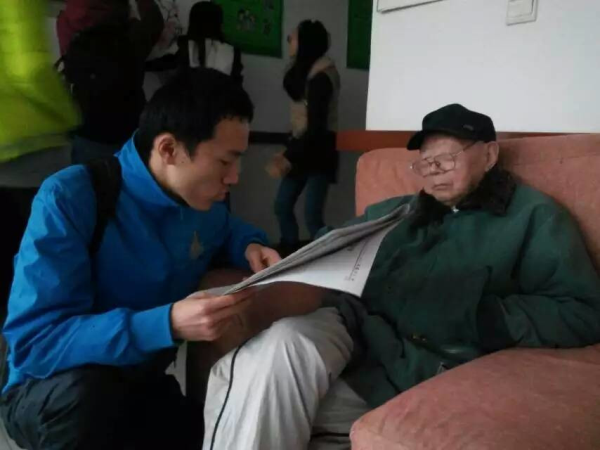 2013级中文专业的同学伸出他们年轻的手,握住了一双双带着老茧的粗糙的手。他们给吴泾镇敬老院带来了经过重新装饰而变得温馨美丽的屋子,也给那里的老人带来温柔的读报念书声。