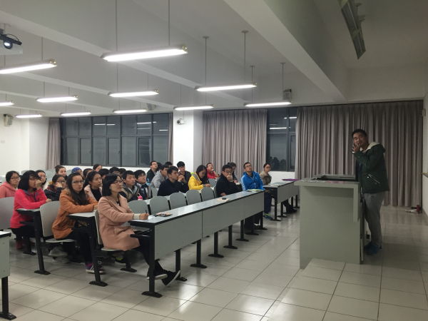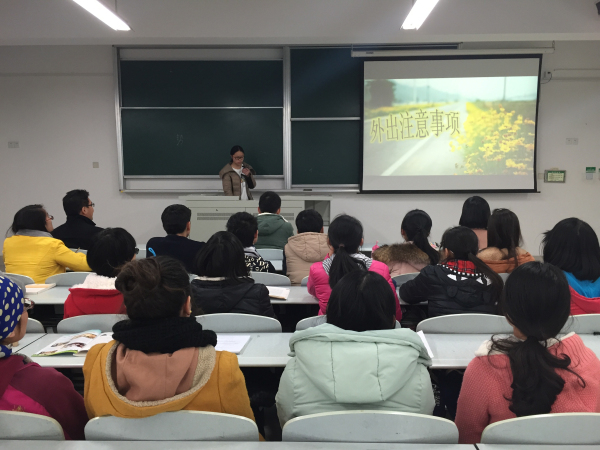 2015年12月3日晚八点整,在第一教学楼207室,2015级物理学专业的班委在丁金花老师的带领下,给同学们开展了一堂安全教育课。