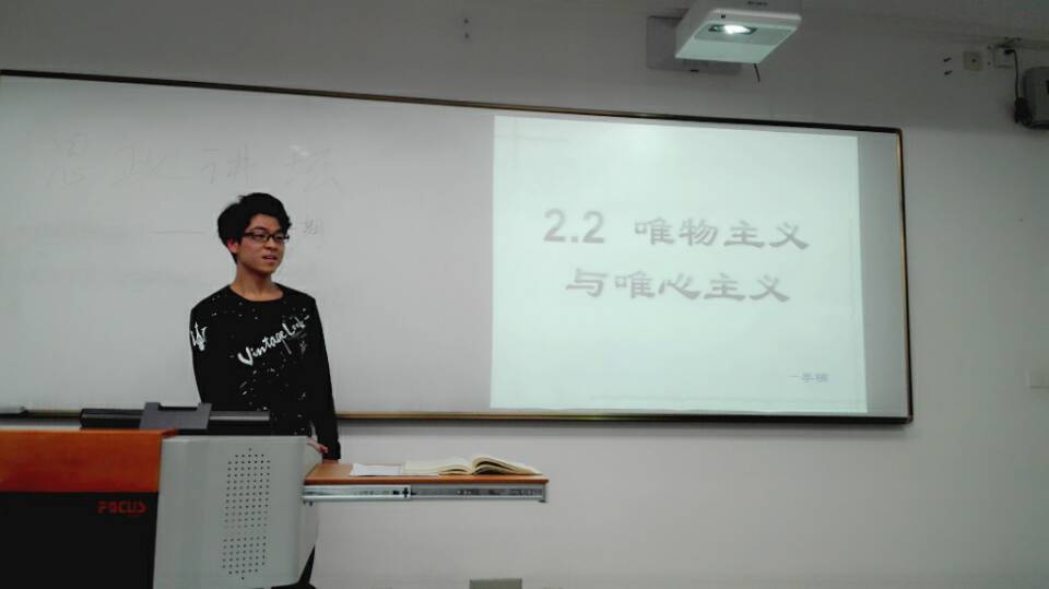 接下来,李楠同学为大家讲授《哲学生活·唯物主义与唯心主义》的内容。准备充分的PPT搭配上李楠同学亲切大方的讲解,使得整个课堂气氛先得显得十分轻松。李楠同学为大家细心讲解唯物主义与唯心主义的根本区别,通过浏览名人名言,再进一步引申到古代朴素唯物主义、近代形而上学唯物主义等相关内容,使得课程结构十分合理。讲述完毕之后,计楚婧同学、刘萌萌同学对李楠同学的课程讲解提出了诸多建议,如教态的调整、PPT内容的设置等,相信李楠同学也会做得越来越好。