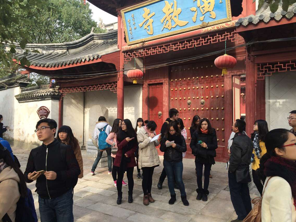 同学们在演教寺前积极的讨论并做好记录,还不时地就相关问题与李山老师进行交流。
