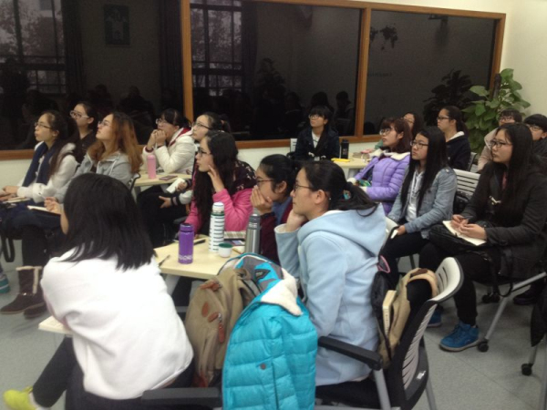 接下来,高老师首先为大家播放了介绍如何选课的专题视频,再登入公共数据库为大家详细解说选课的步骤,提醒大家几轮选课应该注意的具体事项,罗列出热门的公选课程供同学们参考,同时提醒大家在公用电脑上选课后不要忘记关闭浏览器等小细节。在高老师的讲解结束之后,同学们针对有疑问的地方向老师提出疑问,老师也做出了细致详尽的回答。