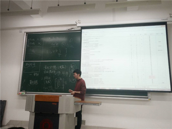 而随后的杜金金学长则把介绍的内容侧重在选课的技巧和四年内课程的编排上。众所周知,杜金金学长是很出名的大学霸,他向我们展示了自己目前为止各个学期的课表安排,建议我们把一天的课程科学地、相对集中地分配。学长还告诉大家一些“冷门”的小知识,比如我们师范生也可以选择非师范生同学的课程作为我们的专业选修课来修读。在这里学长和学姐都提醒大家,注意所选课程是否适合自己,是否属于理科范畴,考试形式是怎样的,老师的评分标准是如何规定的,以及课堂氛围是否符合自己的胃口等等,这些都需要我们在选课前认真考虑,多多打听。