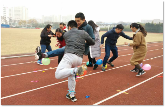“踩气球”比赛激烈PK