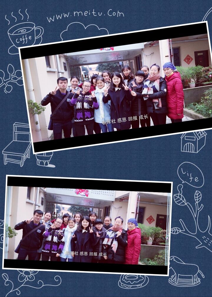 2015年12月6日星期日,春晖志趣联盟迎来2015-2016第一学期闵行区吴泾镇敬老院志愿服务的最后一次活动。早晨8:30 ,当室友都还在温暖的寝室中休息时,志愿者们迎着凛冽的寒风走在去往敬老院的路上。