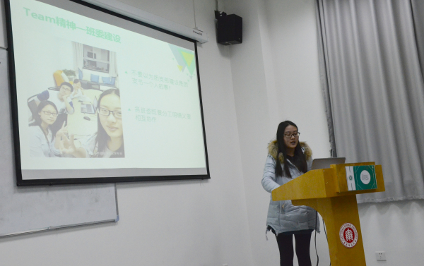 红旗团支部代表对班团建设进行经验分享。首先进行分享的是2014级化学科学团支书陈茹婷学姐。学姐首先展示了他们团支部的特色:团支部特刊。其次,学姐为我们总结了几个注意点:1.Team 精神(各班委分工明确相互协作) 2.随时要注意细节问题 3.多和优秀的人沟通 4.对待自身工作,要从态度上找到诚敬。接下来与我们分享交流的是2014级汉语言文学专业的何欣怡。她与我们分享了14级汉语言文学团支部在过去的一年里开展过的活动,几乎每个都与汉语言文学专业十分契合。最后,何欣怡总结道,团校活动需要专业与创新,班团负责人需要投入与付出。