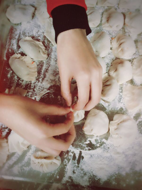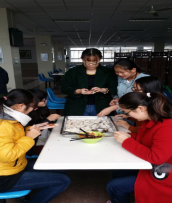 大概下午2点半,同学们开始包饺子了。而心灵手巧的团支书郑月瑶就开始迫不及待的向同学们展示各种花式包饺子的方法,听说这是她妈妈教她的。