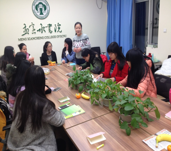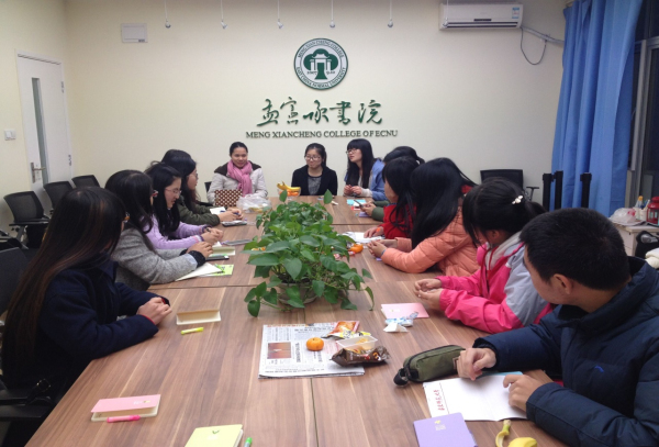 2015年12月18日晚,我系学生在孟宪承书院20号楼118活动室召开了“教师资格证面试与实习经验交流会”。三位大四学姐赵春蓉、郭苗、龙云迷在繁忙之中应邀向我们分享了她们自己宝贵的经验,此外我系学生也积极参加了此次活动。